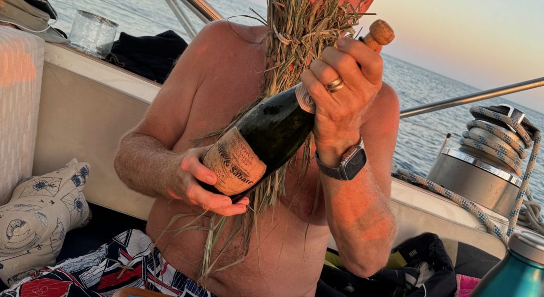 We had been quite worried about sailing the distance from Panama to Galapagos, because friends of us have had thunderstorms, strong winds on the nose and big waves. Luckily we didn’t get anything of that. The Pacific was peacefully flat as a blue ball floor. We rig the whisker pole again and sail with 8 to 10 knots. In the afternoon Captain Anders is making Tarta de Queso a la Yaghan. Nilla is braiding a Neptun beard out of lemon straw for Anders. All in preparation for our Tribute to Poseidon when we might be crossing the equator the coming day.