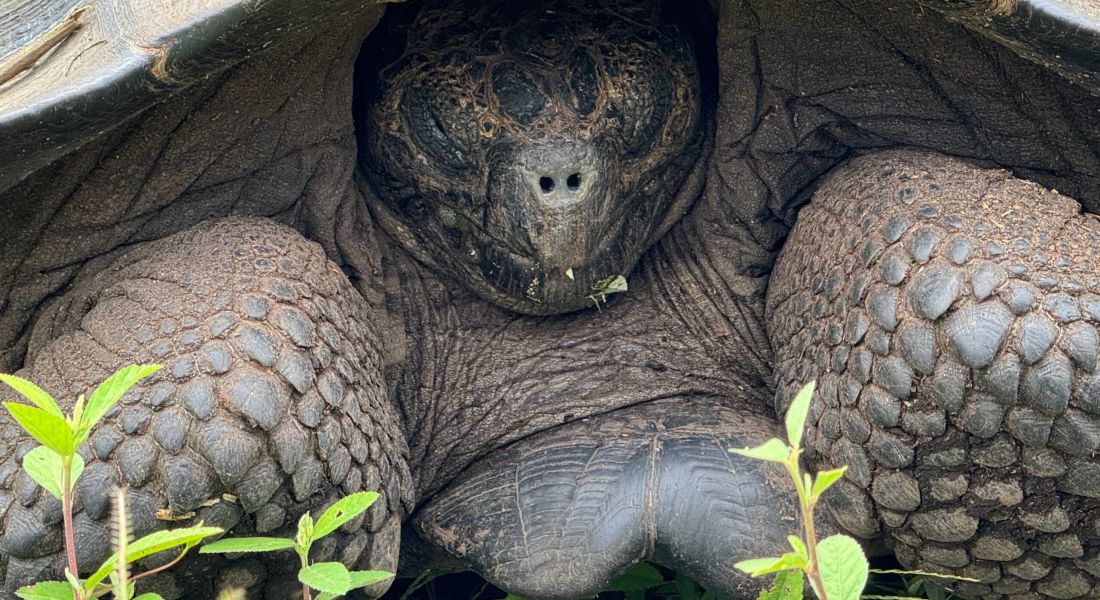 The tortoises are free to move, but they come to the sanctuary to eat and sometimes to take a bath in the natural pools, made by tortoises by pushing the earth from one side to another. Tortoises are very sensitive to vibrations, and we learned to take care when we approach them and only come closer calmly without running. When they make a silent sneezing sound, they are upset and say: stay away! Our guide showed us the difference between small flatter female and bigger male tortoises. These slow creatures have survived thousands of years, adapting to different habitats with a longer neck or a different shape of the shell. Many subspecies of the tortoises are extinct, but 12 are still alive on the different islands of Galapagos. It was a magical feeling to meet these time wanderers.